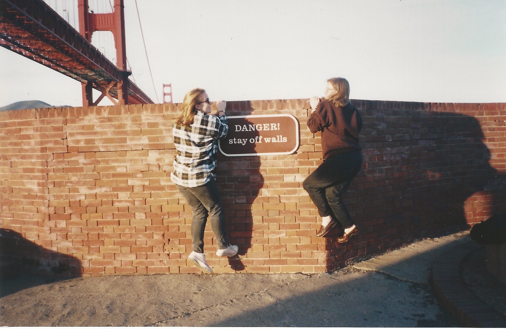 My favorite thing about this picture is how obvious it is that we were way too chickenshit to ever climb that wall. You can almost see the little thought bubbles saying “let’s just sort of hold on to the top and jump and kind of hover there long enough to take the picture. It’ll look like we really climbed the wall, right?”