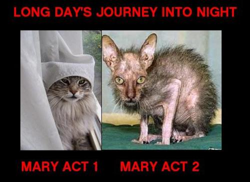 I found the title to be evocative of the mood of the play and also kind of beautiful.  At first I thought it was just a reference to the time frame of the story, but after reading it I see that it’s more a reflection on the journey the characters take into their vices: the night of the title is the night that the characters descend into with morphine and whiskey.  I would go further and say that it’s more a reference to Mary’s journey than the others, though it applies to them too with their own alcoholism.  Mary, though, seems completely lost in the night at the end.  The men want to be, I think, but don’t quite make it as far as she does.
