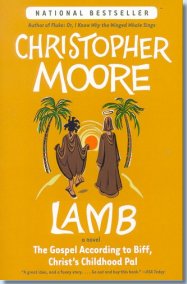After many weeks of reading books by esteemed authors, many long dead, about subjects as diverse and often dismal (but beautifully written) as the collapse of families and marriages, Norweigan ladies who like to play with guns, and swamp-bound, incestuous Colombians, I needed to read something fun. Something light. And most importantly, something written during my lifetime. So I went into the room that contains my many piles of books, and I stared. And when I got to the shelf with the M’s, I said to myself, “Eureka! Christopher Moore! That’s the ticket!” But I had to choose a book with some historical merit; it couldn’t just be any old Christopher Moore book. So in honor of Lent, I picked Lamb: The Gospel according to Biff, Christ’s Childhood Pal.