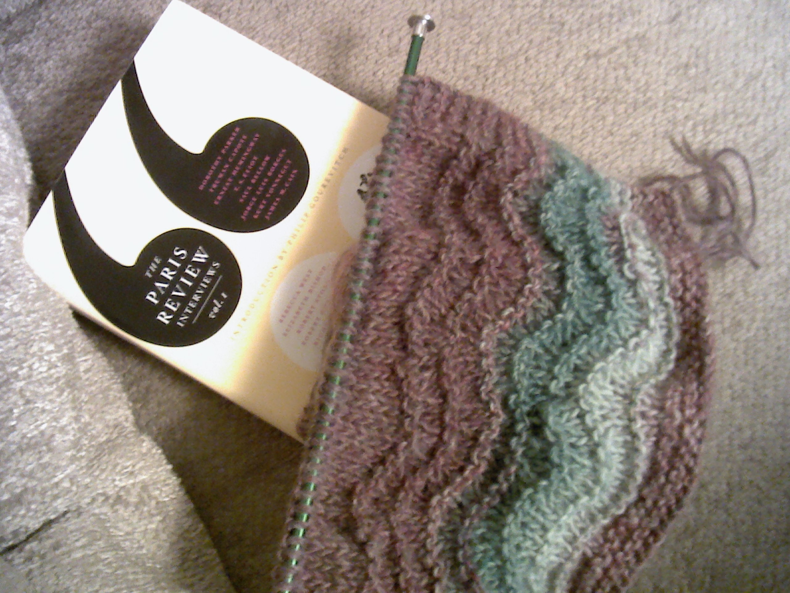As always I’m reading a dozen or so books at a time. The one in the photo is one of the assigned texts for a class I’m taking, starting tomorrow. It’s the first volume of the Paris Review Author Interviews, and so far it’s really good. More to come when I’ve read more than a few pages.