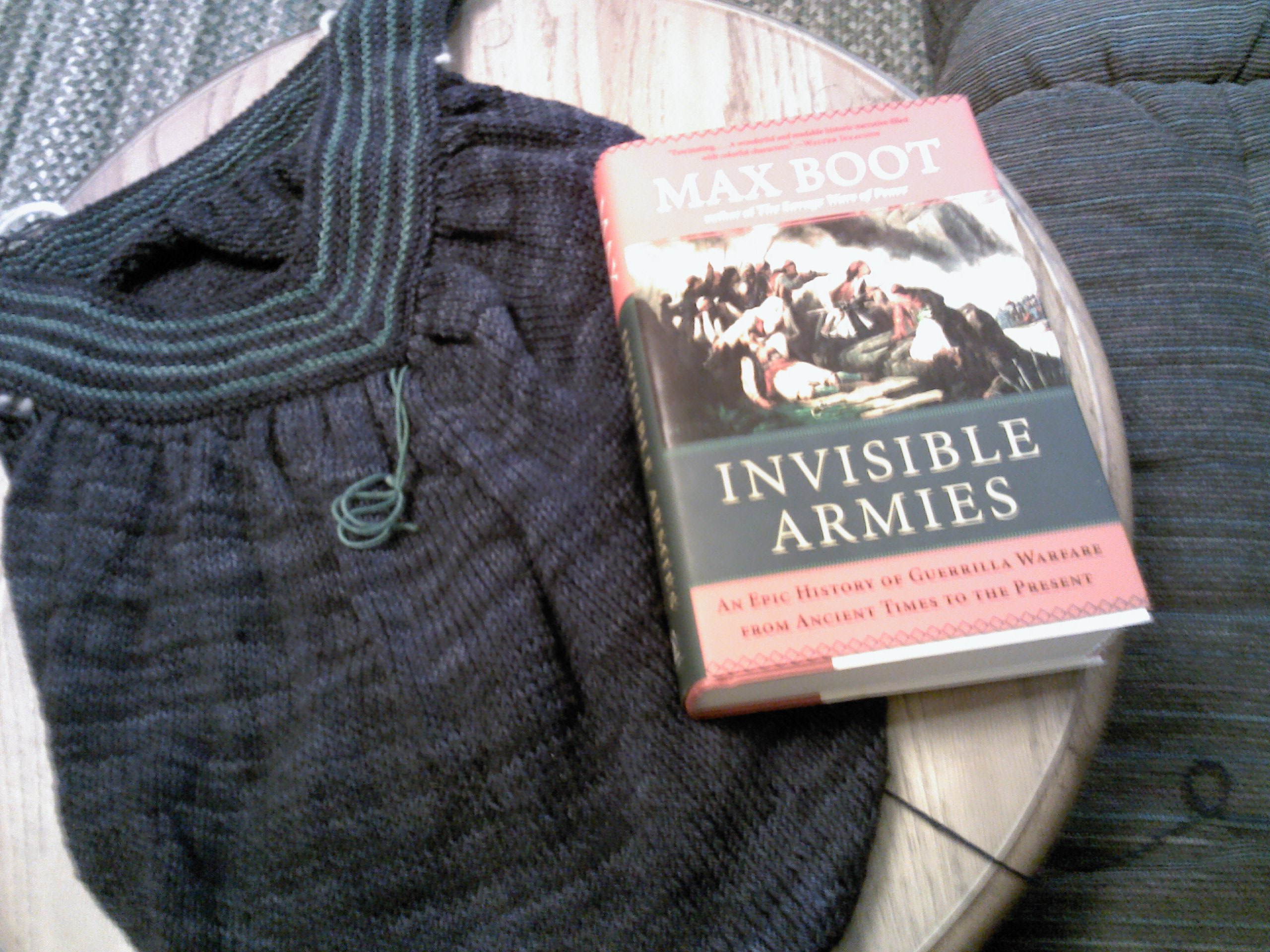 OK, I’ll admit – I’m not actually reading Max Boot’s Invisible Armies from start to finish. It’s really interesting, but right now I’m focused on developing a character in my novel who’s a history professor that specializes in guerrilla warfare, and I’m jumping around reading sections that apply to his work. I’ll save the rest of the book for Purgatory.