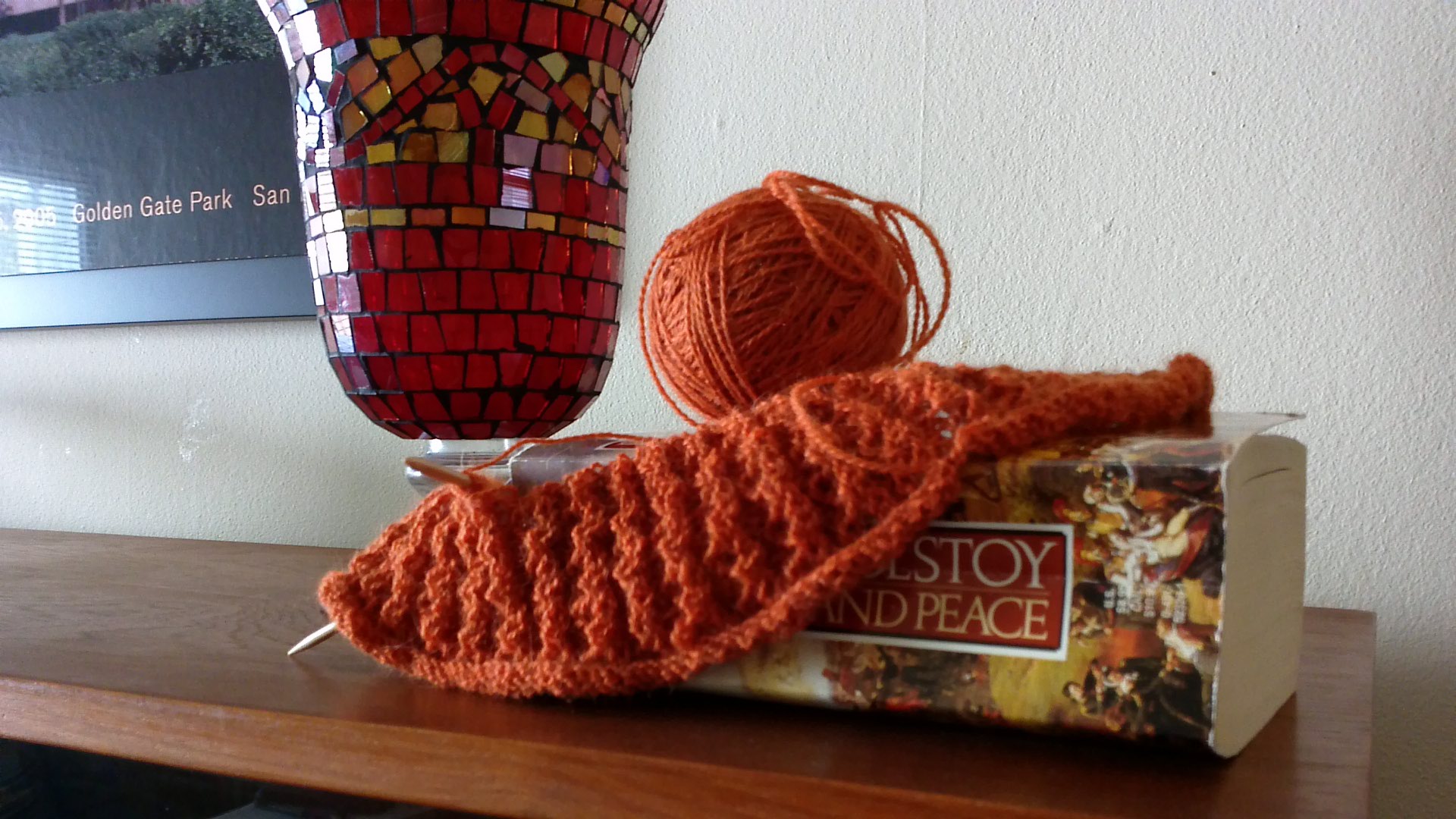 Any questions about why I haven’t gotten much work done on my orange cowl since last week? I’d tell you, but I’ve got this enormous novel to read…