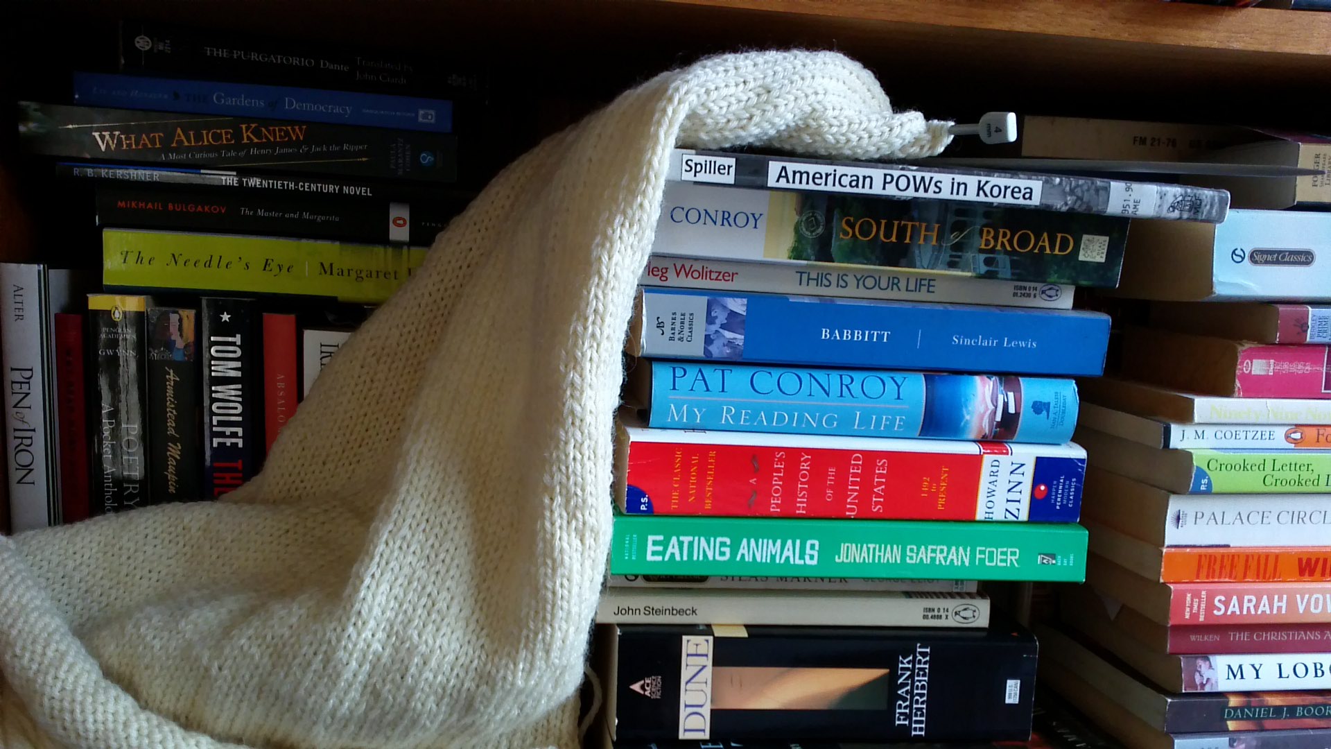 I’m not reading all of the books in this photo, but I might as well be. My life for the last couple of weeks has been a chaotic mess of knitting, reading, writing, and hurting, with an emphasis on knitting and hurting. My memory may be inaccurate, but I think I’ve had more pain in the last six weeks  than I did in the weeks and months before I quit my job because I was in too much pain to function – which is scary because even though it took me way too long to work up the courage to quit, I always knew that option was available. What comes after quitting your job? You don’t have to answer that.