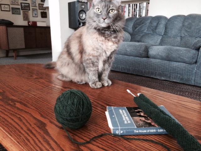 Emma would never dream of sitting still long enough to read The House of Mirth. She prefers the YouTube version. 🙂 And yes, she does like yarn, but she’s surprisingly well behaved with it. I give her a small ball of leftover yarn to play with every so often, but she never helps herself, for which I am VERY grateful!